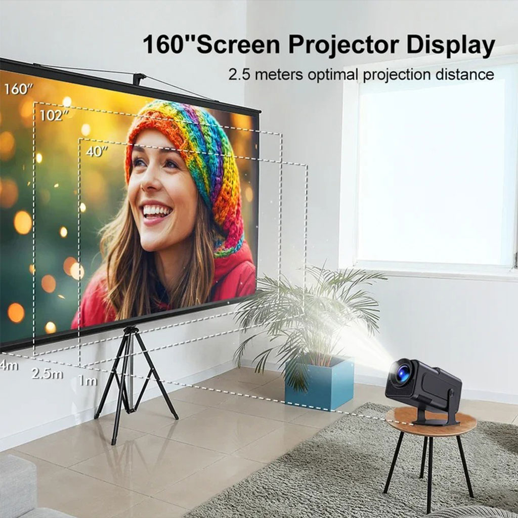 ✨ سينما منزلية معاد تعريفها : استمتع بعرض مذهل يصل إلى 150 بوصة، مثالي للأفلام، ألعاب الفيديو أو العروض التقديمية. يمنحك سحر قاعة السينما أينما كنت.